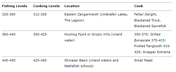 Fishing (Levels 325-450) and Cooking (Levels 312-450)