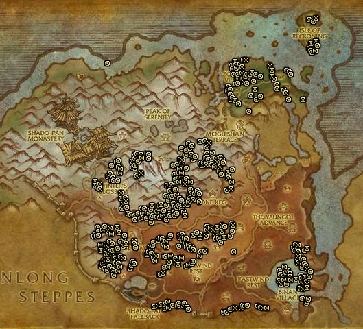 While there aren’t exact routes to follow for finding this ore yet it’s highly probable that it will be found in the Townlong Steppes, Vale of Eternal Blossoms, and the Dread Wastes.