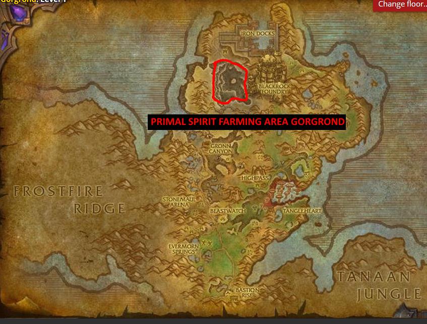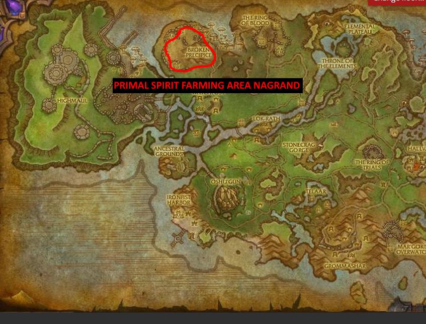 Every single mine has a chance to give you a Primal Spirit so after you clear out your Garrison Mines if you’re still looking to farm them up then head over to Nagrand. There isn’t exactly a good route to run, but there’s a really good area to explore where you can make your own route. The Elemental Plateau is full of mountains, hills, paths, and caves and is LOADED with the Rich Deposits that have over a 50% chance to give you a Primal Spirit.