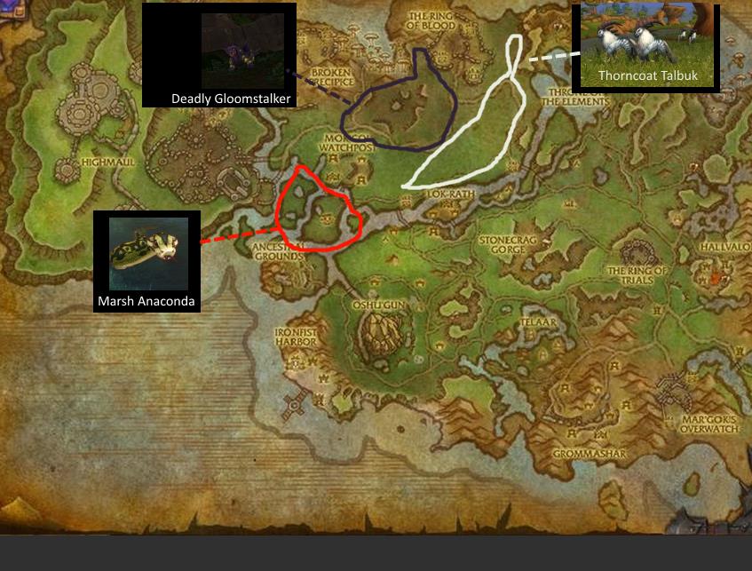 The highest level beasts are found in Nagrand and there are 3 of them that are in the Northwestern part of Nagrand that have higher and consistent drop rates: Marsh Anacondas, Thorncoat Talbuks, and Deadly Gloomstalkers. You can farm these all day but remember every time you skin you have a chance to get a Primal Spirit so don’t pass up other enemies while running these routes.