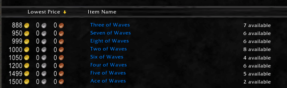 Scribes are the only folks who can make the decks (more below), but anyone can buy the cards, combine them, and turn them into trinkets. You can buy cards and and decks between faires and try to sell them at the beginning of the faire. This faire season, Tsuanmi Decks were selling for 15,000 gold during the faire and around 10,000 after the faire. This is a month long investment that often works very well for traders. You can also buy trinkets during the faire and then sell them between faires. Both of the strategies are very risky. See ‘timing’ below for more information on price trends.