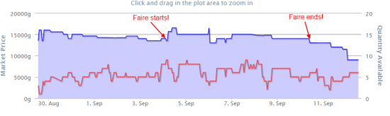On the other hand, the trinkets will hold strong throughout the month before the faire is open and drop in price when the faire opens. This is because you can’t make a new trinket until the faire is open. The best selling timing is to sell cards when the faire opens and the trinkets when its closed. You might find a different strategy to work on your realm though. Search The Undermine Journal for ‘Deck’ and then look at the different decks to see what they did from Sep 4-Sep 10 when the faire was last available.